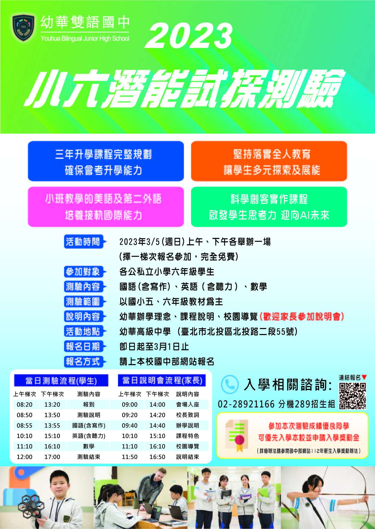 七、檢附「112幼華小六潛能試探測驗」活動簡章電子檔。