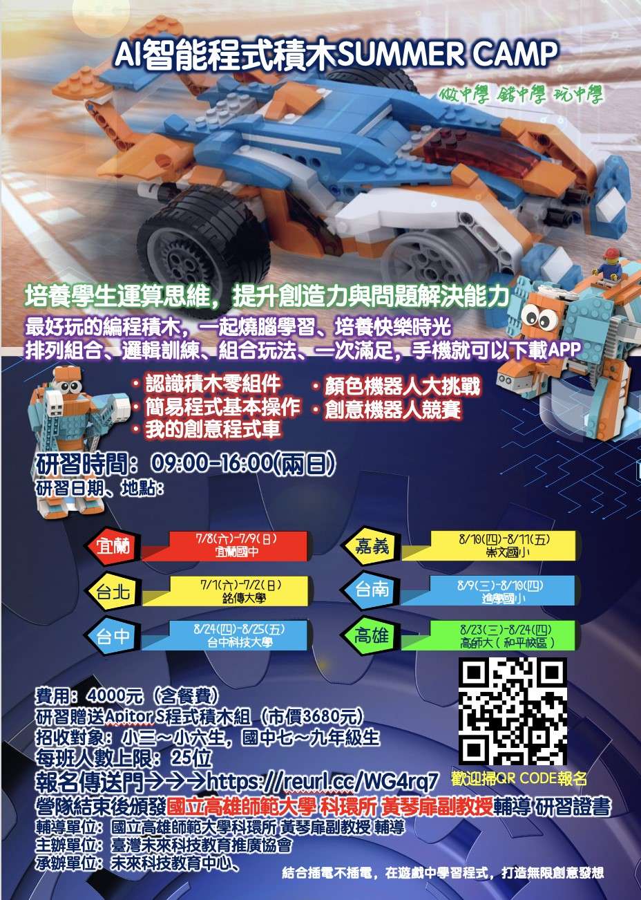 三、費用:4000元(含餐費)研習贈送Apitor S程式積木組 (市價3680元)。