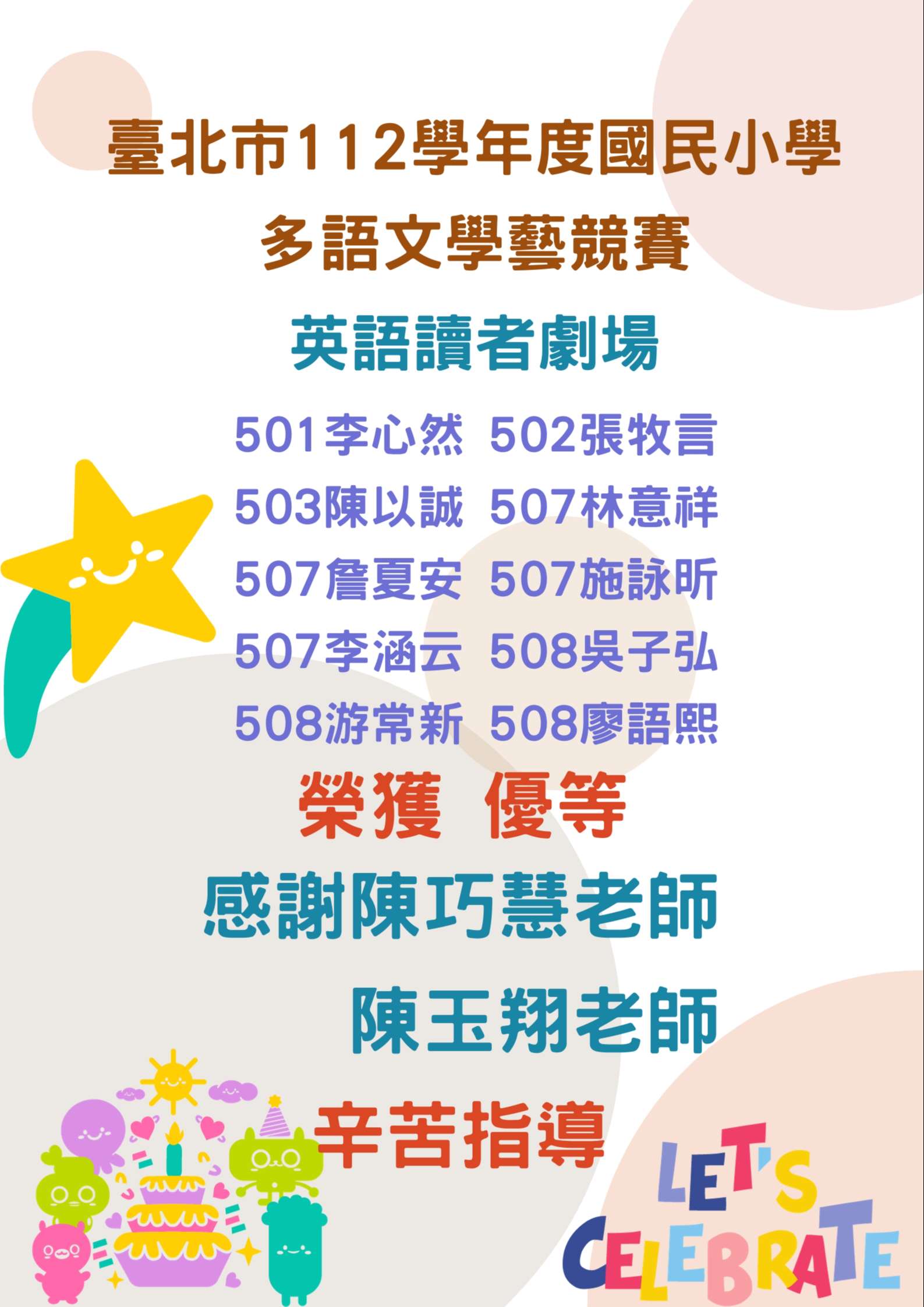 本校學生參與112年度英語文學藝競賽獲得佳績!