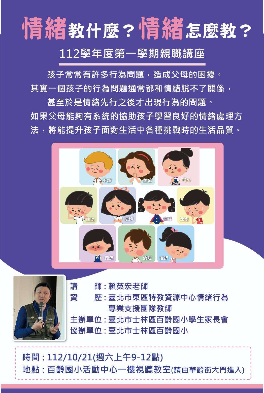 本校家長會將於12/10/21(六)上午9:00~12:00舉辦親職講座,詳情請見活動海報。(核予研習時數3小時)