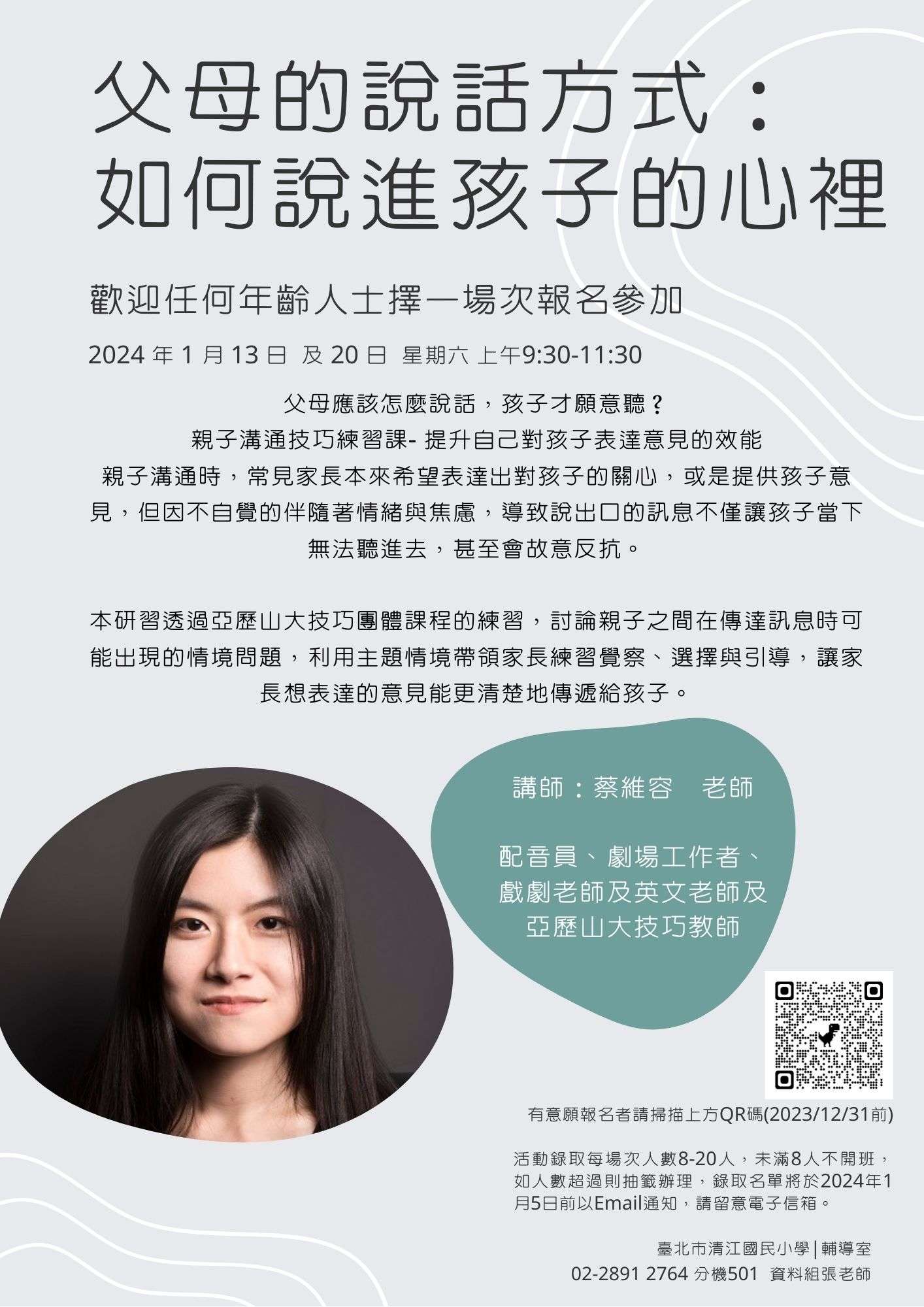 (四)時間:上午 9:30-11:30 (五)地點:北投區清江國小 陽明樓多功能教室2