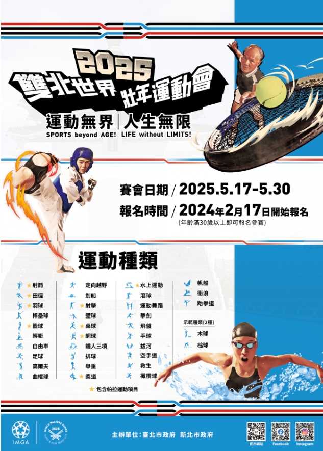 2025雙北世界壯年運動會於2025年5月17至 30日舉行,