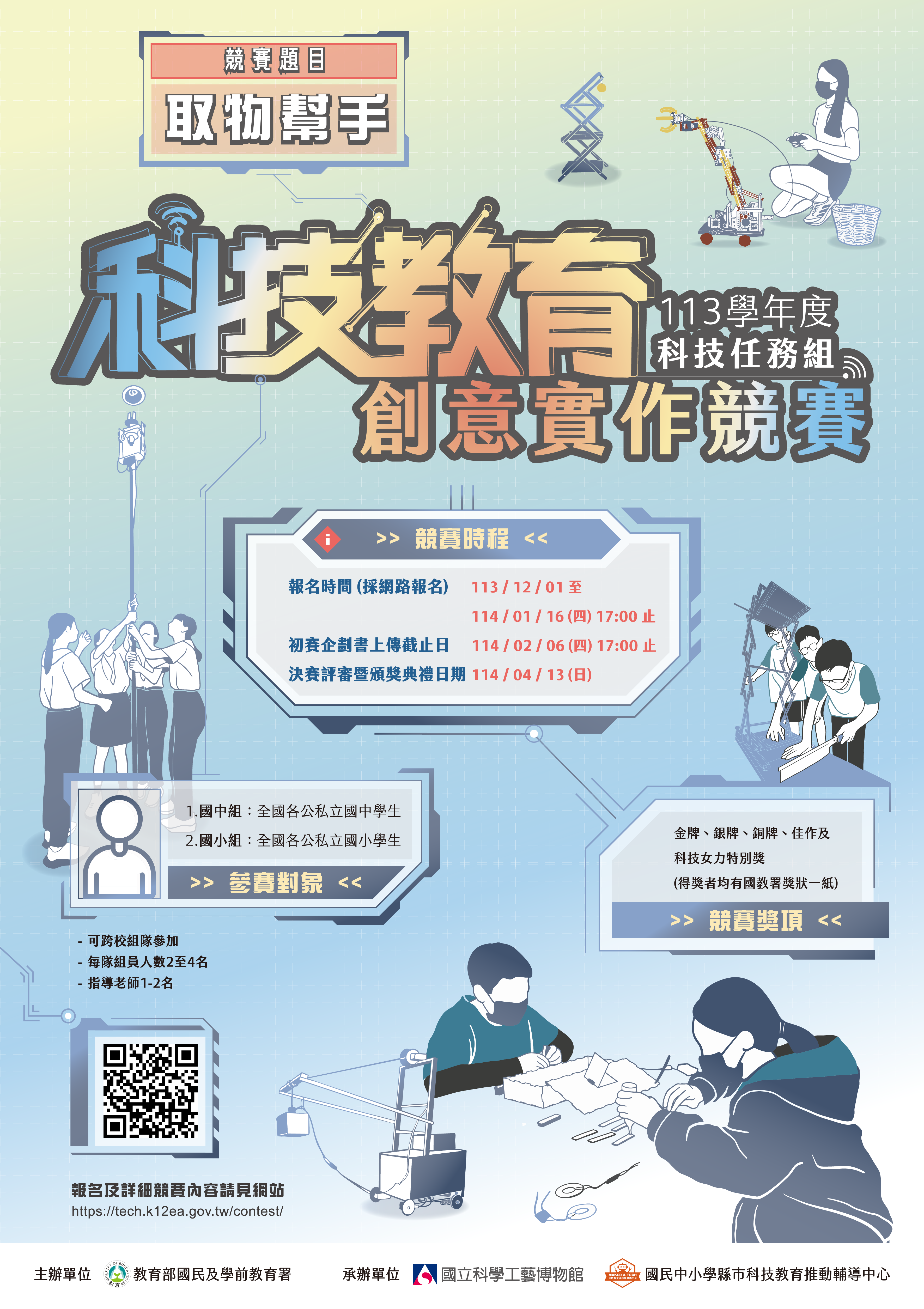 (三)相關競賽資訊請參閱網頁(網址: https://tech.k12ea.gov.tw/contest/ )