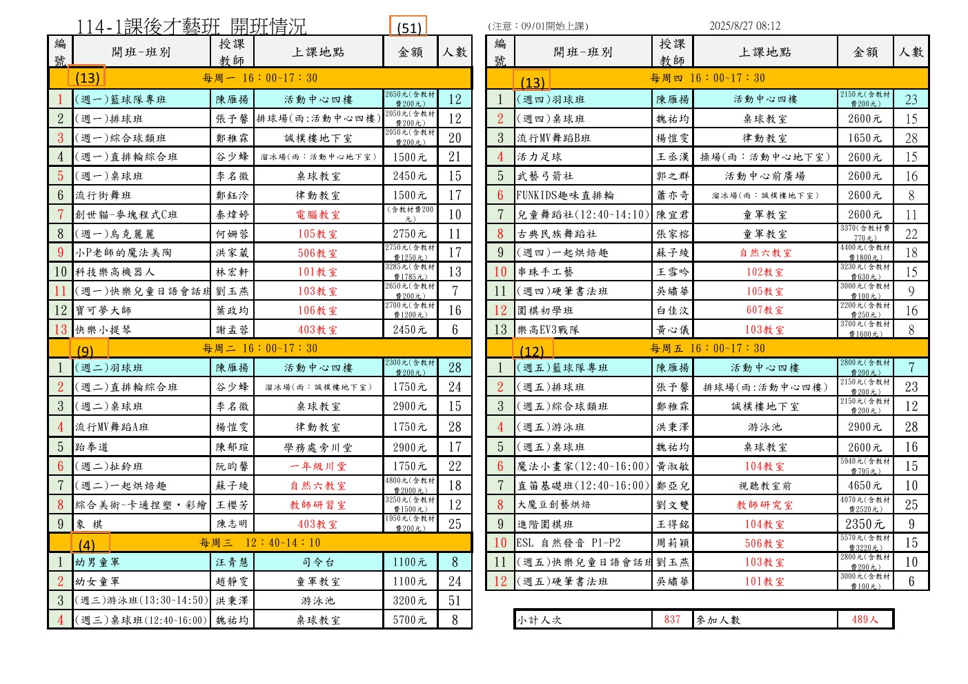 114-1課外才藝班招生公告 https://tinyurl.com/29x6f3nn | 114-1課外才藝班(開班)與(上課地點)公告 https://tinyurl.com/2b9c82m7