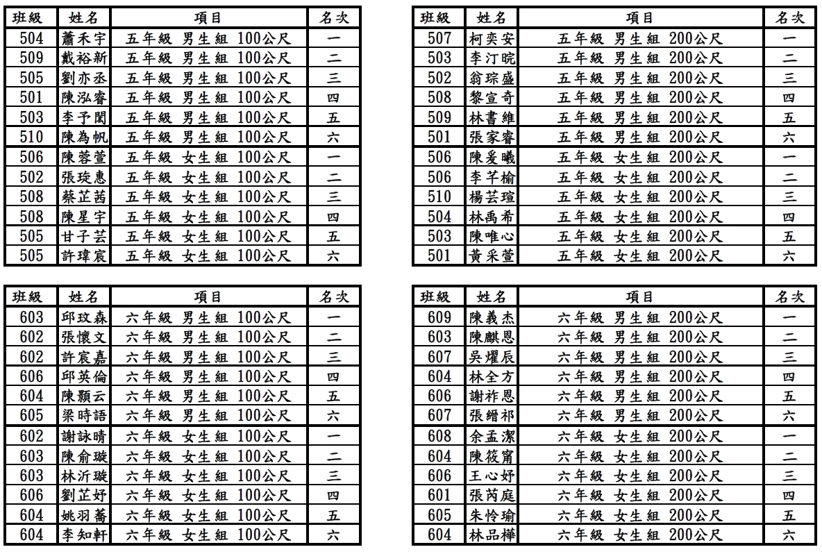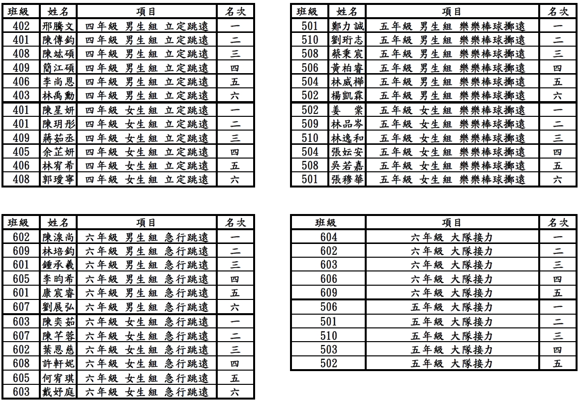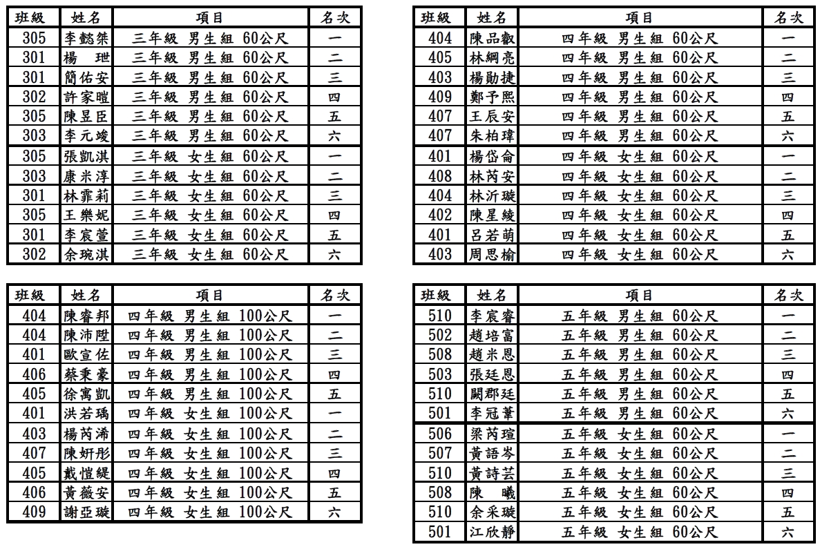 恭喜以下學生們於114體育表演會-競賽項目 榮獲優異成績!
