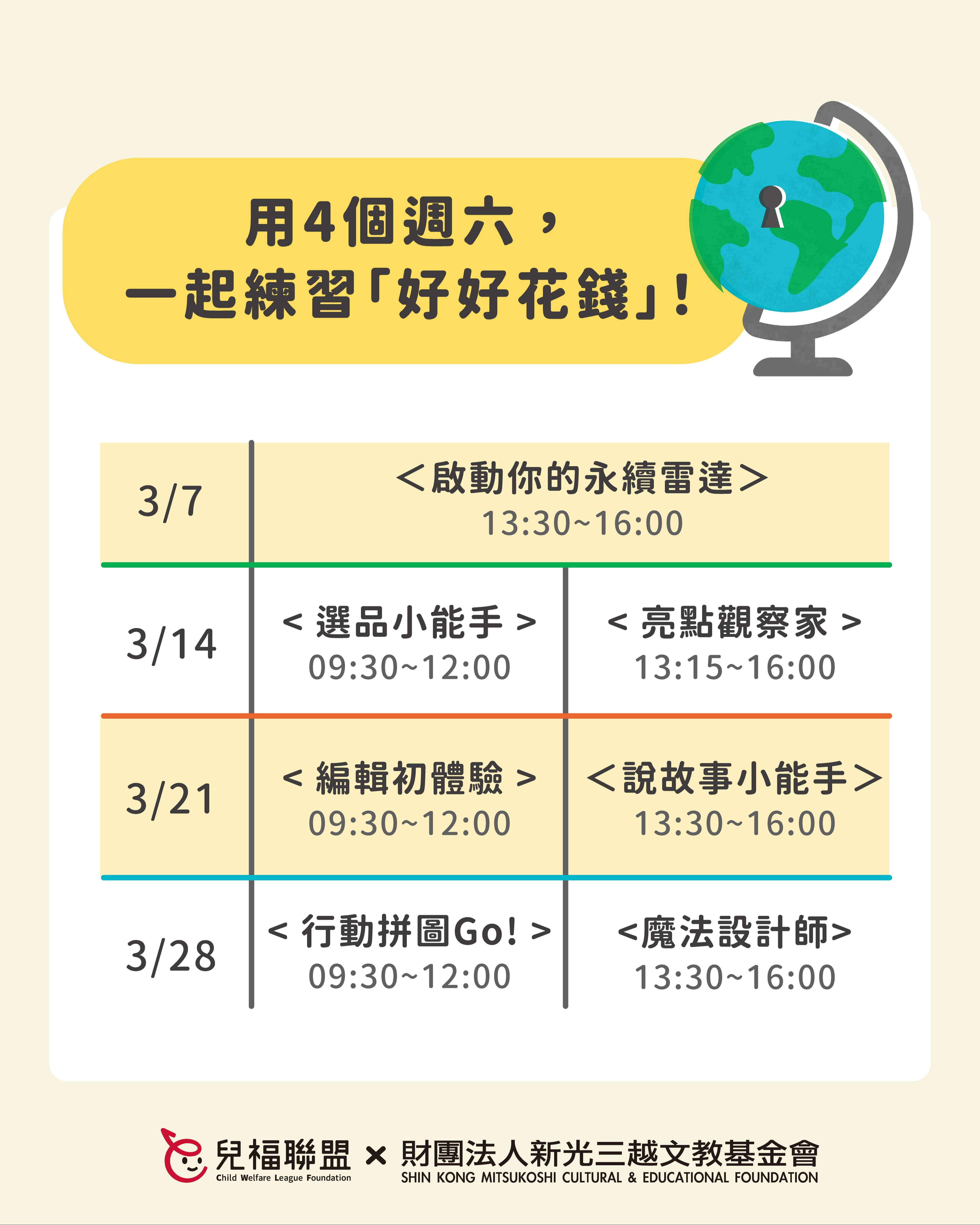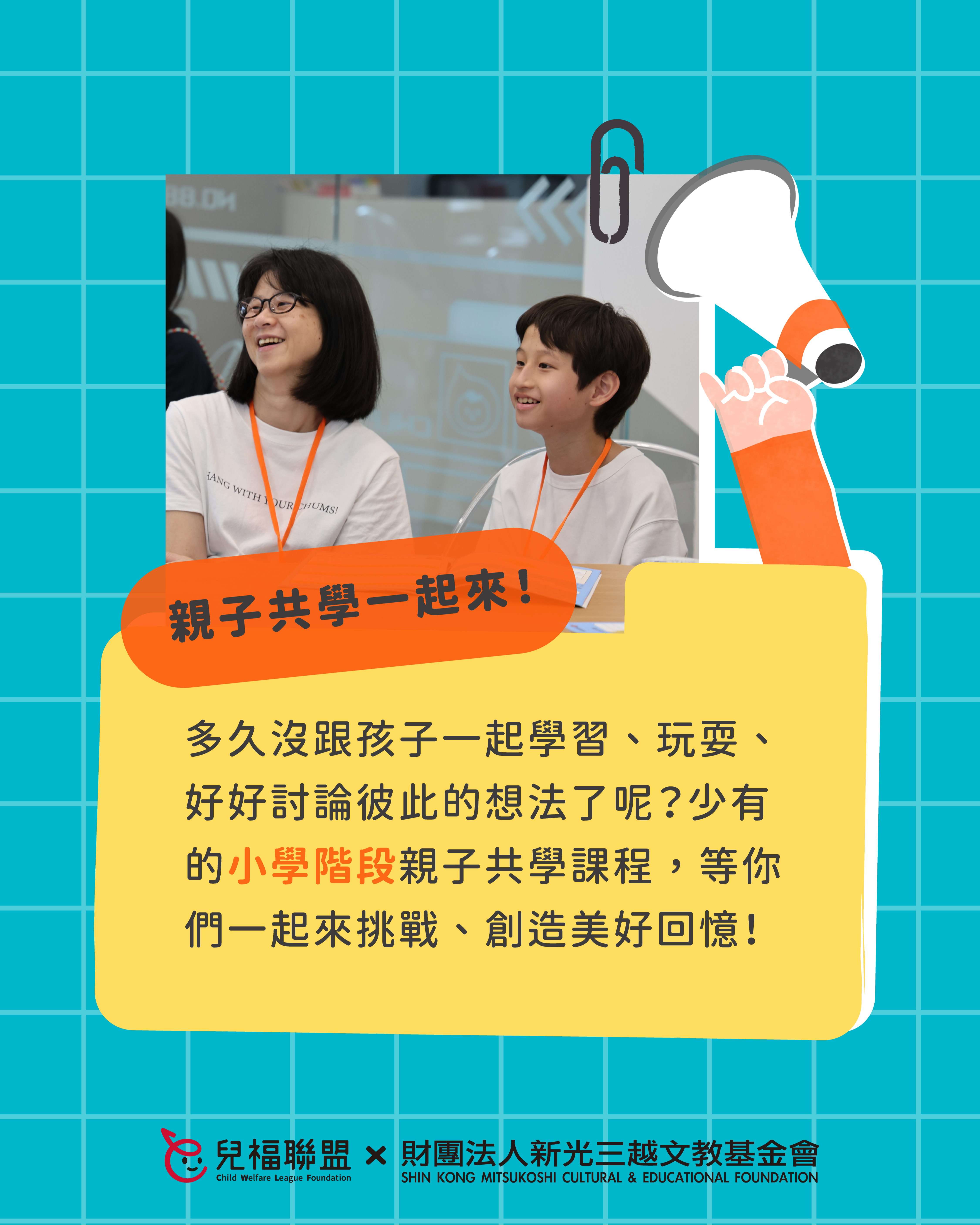 115年3月間週六,於兒福聯盟南西服務中心(台北捷運中山站六號出口)辦理親子共學課程,歡迎家長及學生共同報名參加。