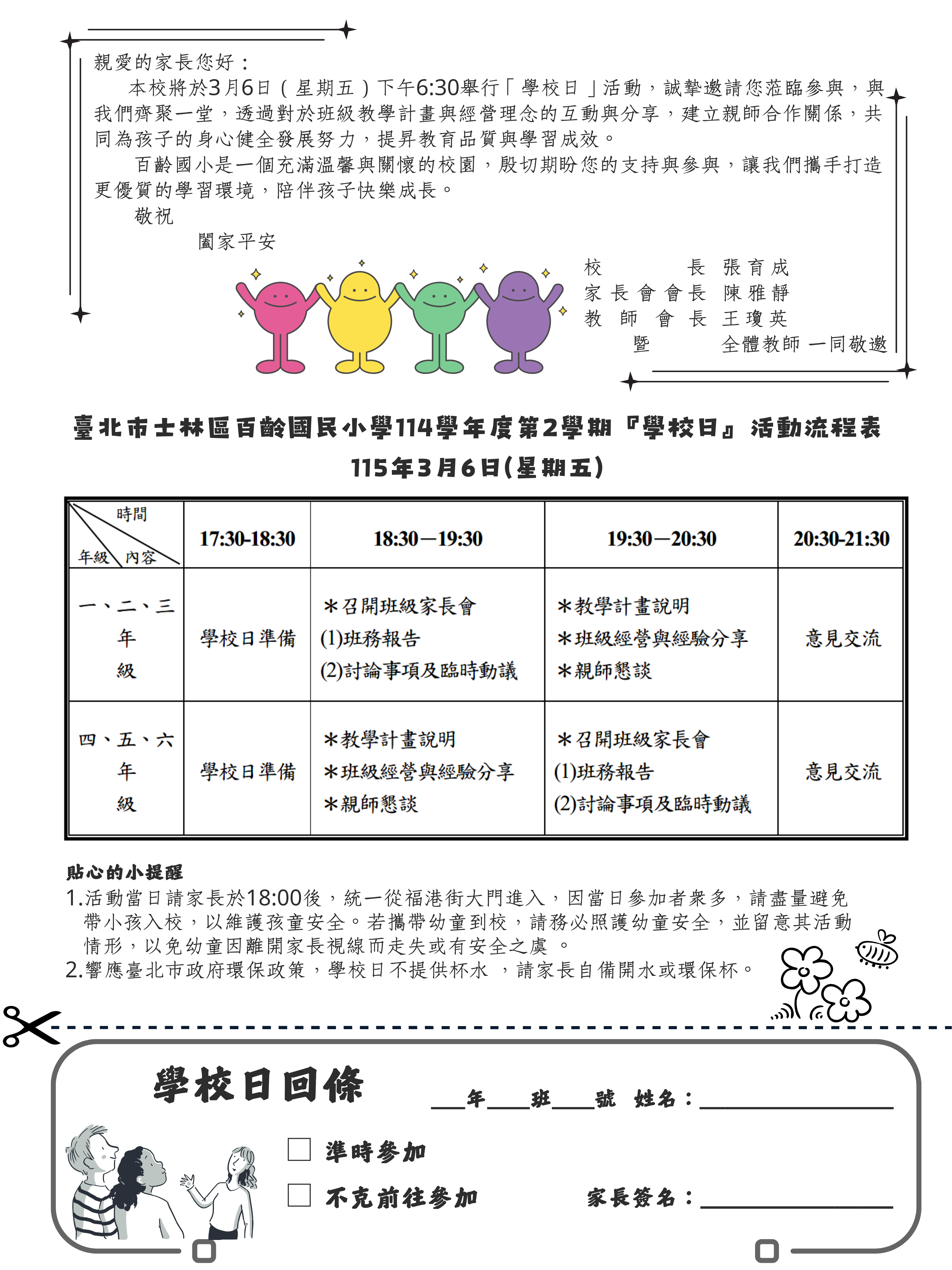 ※ 關於先前發放之紙本學校日通知單,標題文字將學期誤植,造成家長困擾,特此致歉。