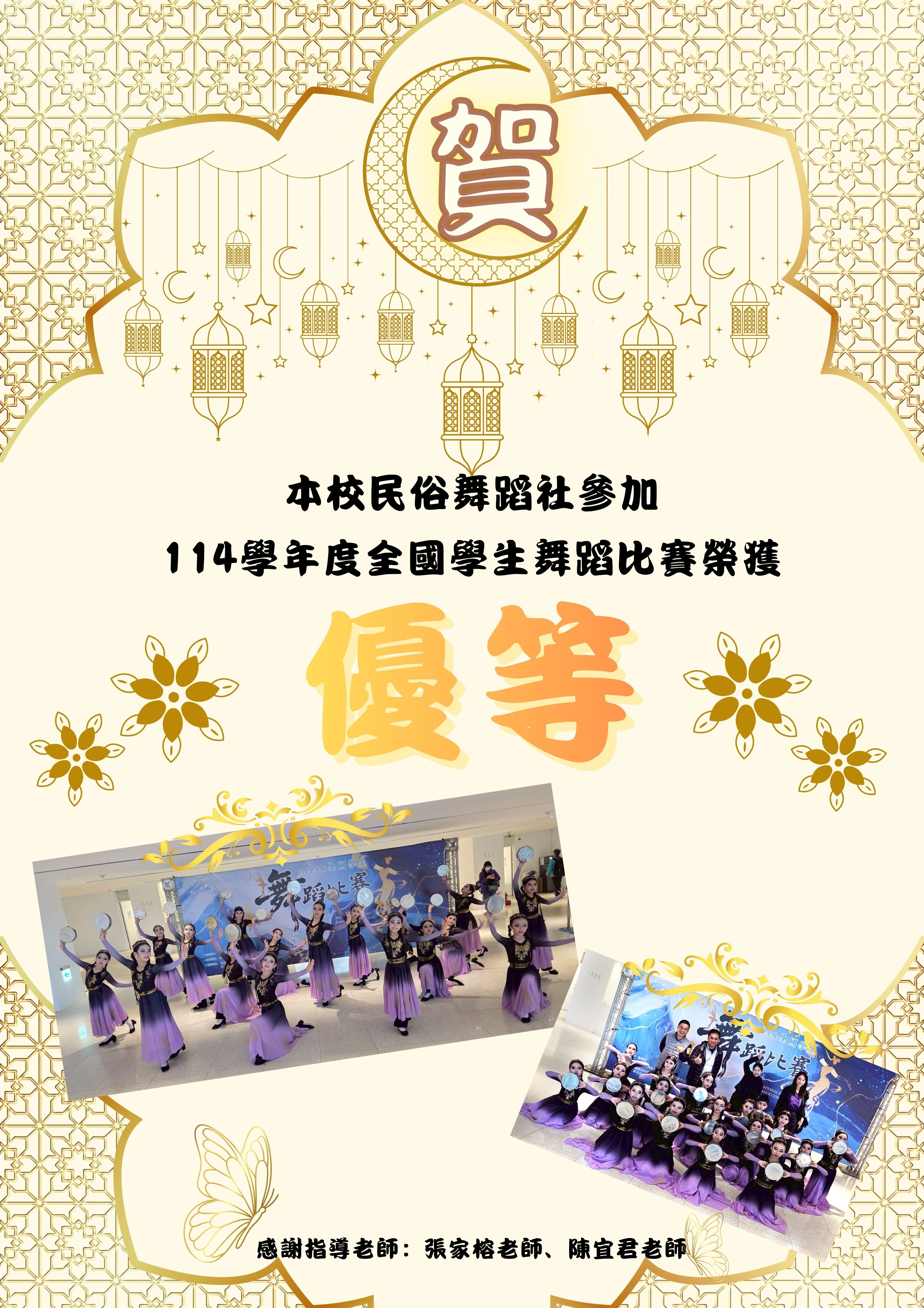 賀!本校舞蹈班參加114學年度全國舞蹈比賽榮獲 優等成績。